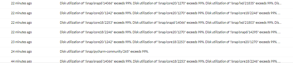 Hi again, i have again the same problem, in my servers the check of disk discover again the partitions /snap*, i have configure the rule for exclusion but again showing disk and alarm for this. Not working fine, this problem is recurrent i need solve this issue. Thanks a lot.
