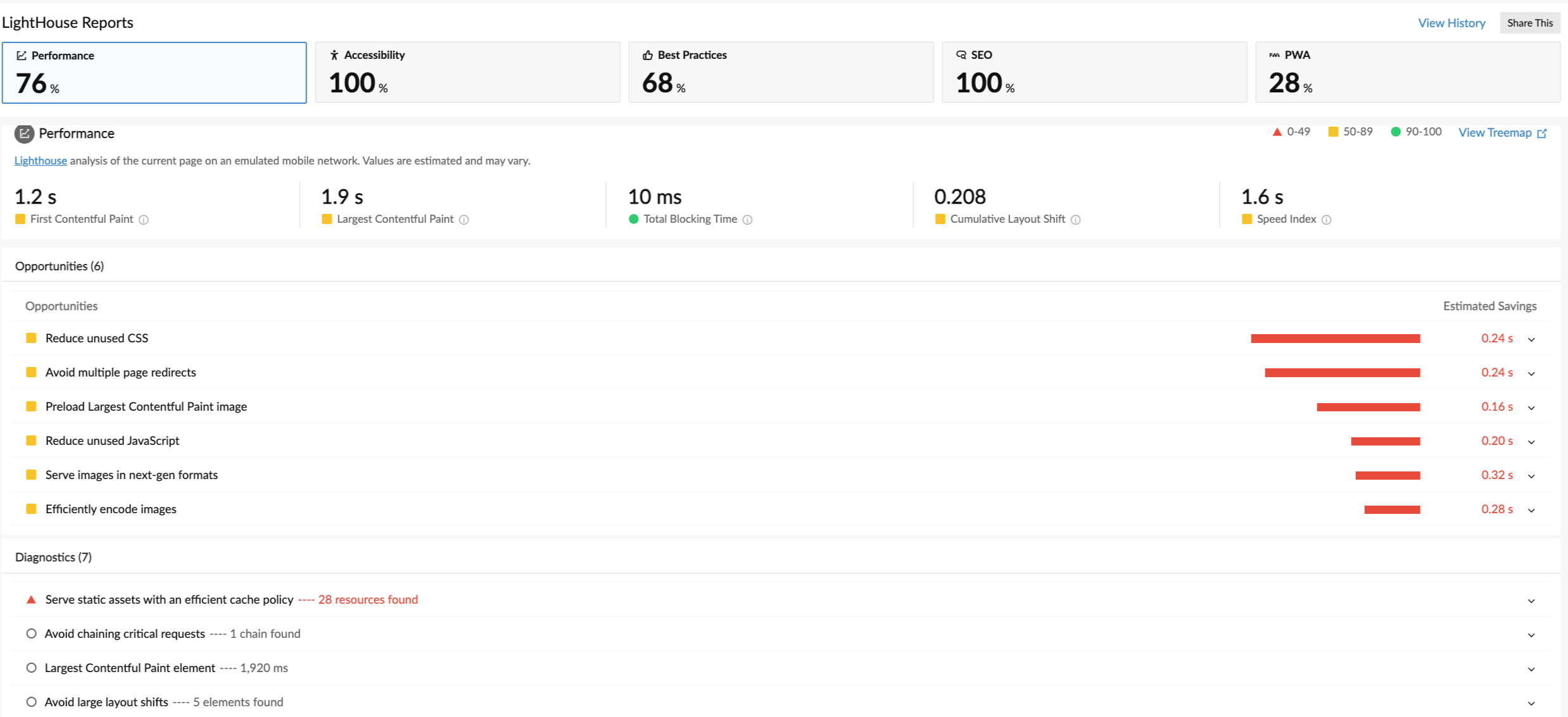 A lighthouse report can be valuable for a website by providing insights and actionable recommendations to improve key aspects of performance, accessibility, SEO, and more. You can now view a detailed lighthouse report for the URL you've used for creating the webpage speed monitor.
