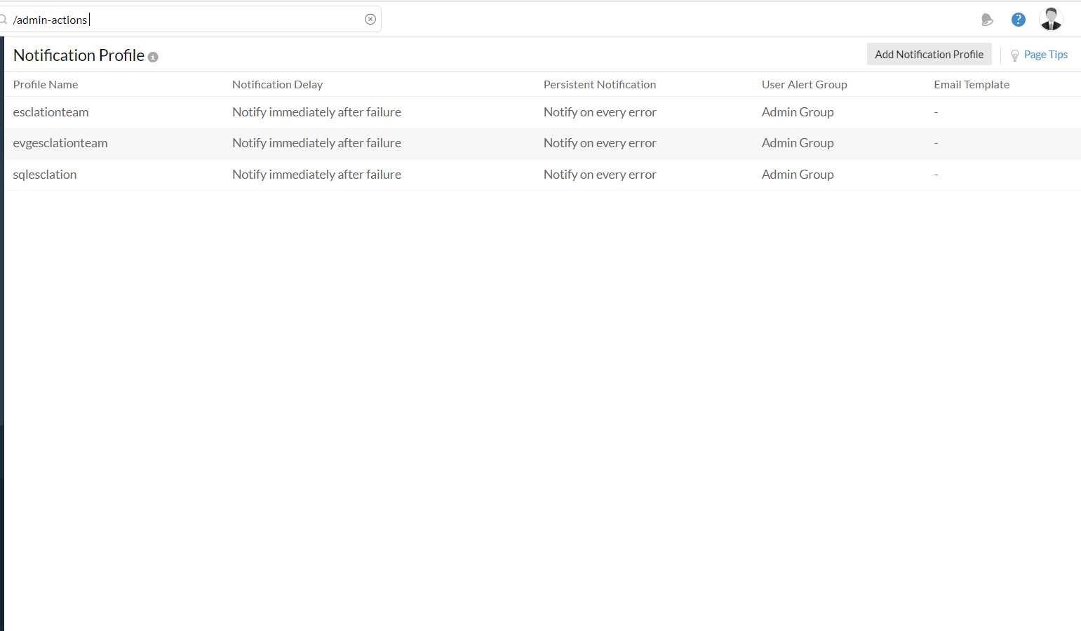 Navigate to Admin > Configuration Profiles > Notification Profile.