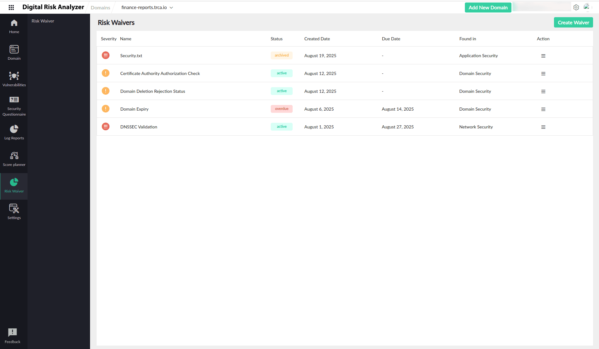 We’re excited to announce the launch of the Risk Waiver feature in Digital Risk Analyzer. You can waive your third-party risks with proper justifications and maintain your security posture.