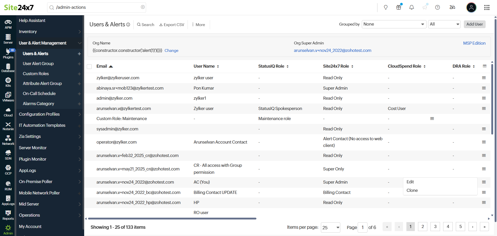• Onboarded: Displays when the user was granted access to Site24x7.